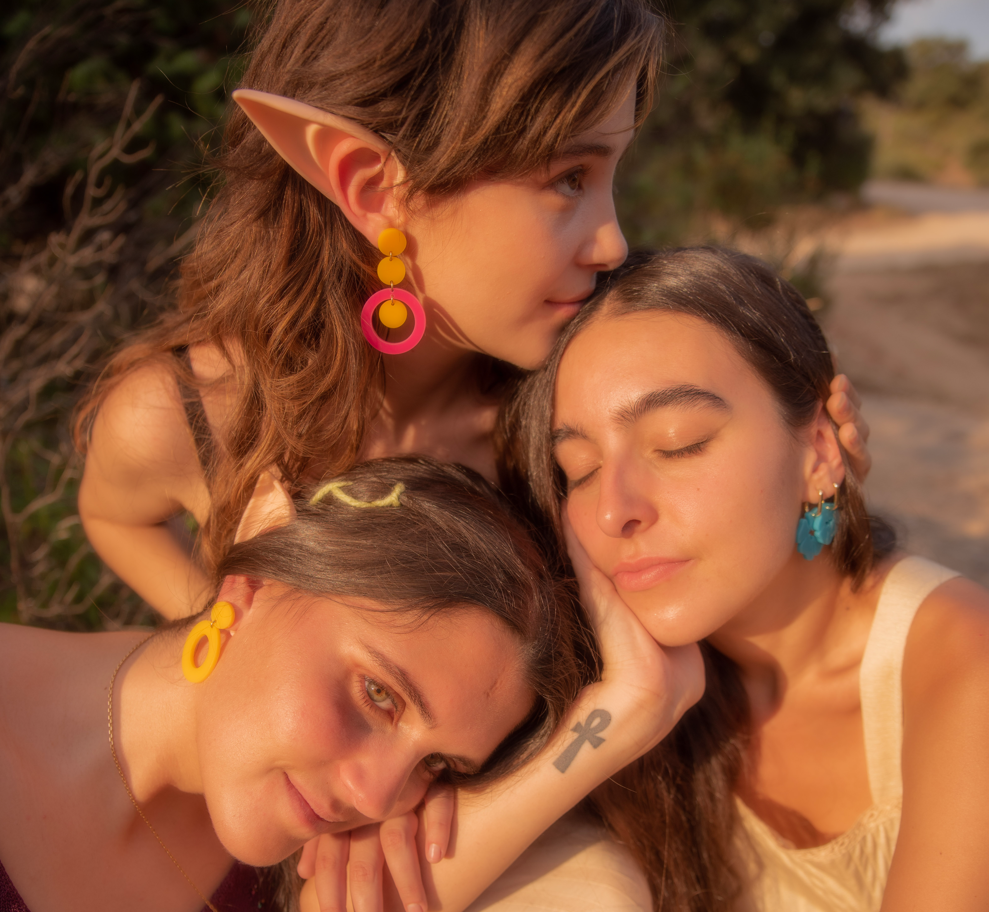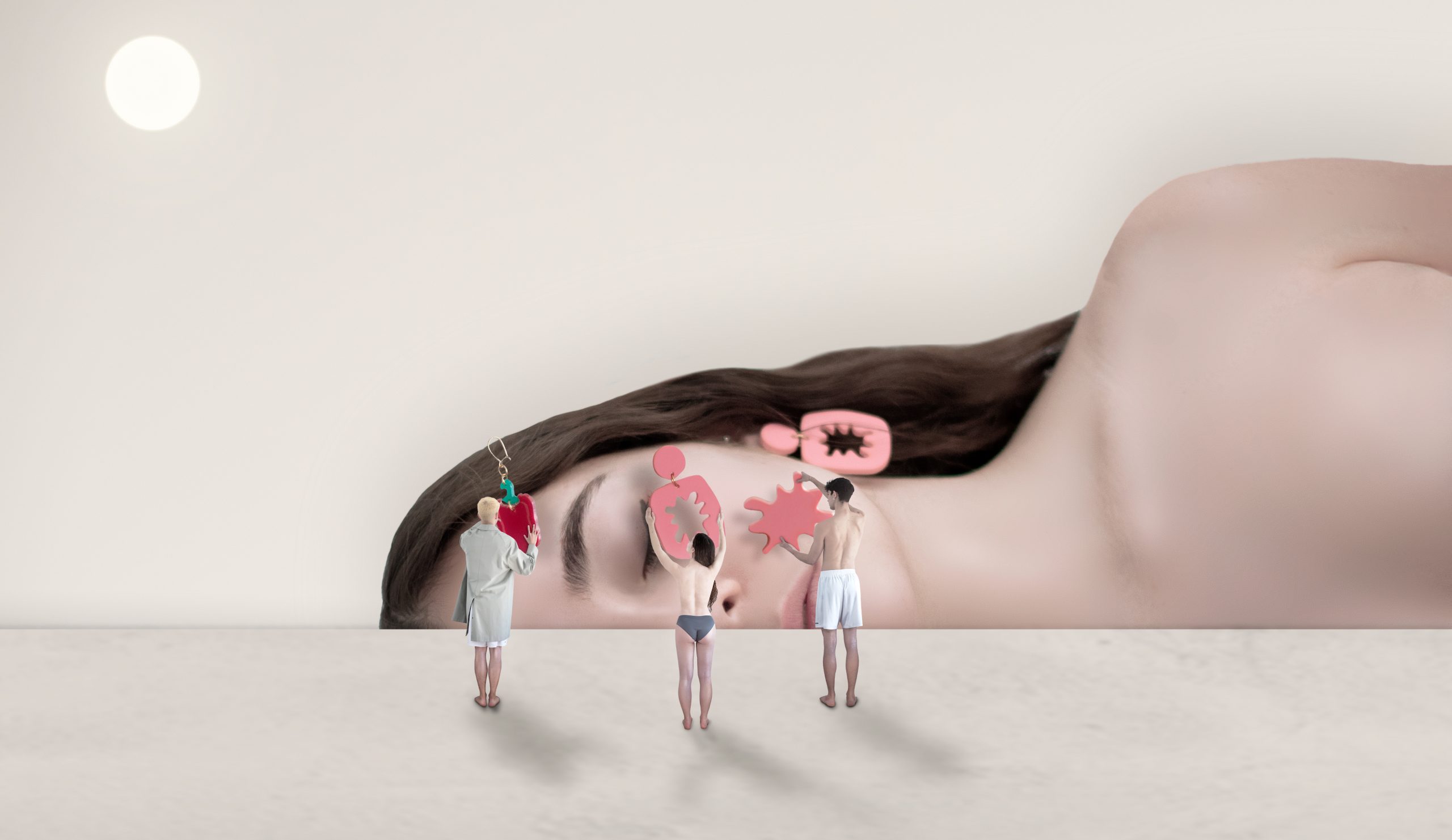 Quisimos unir fuerzas para crear lo que llamamos un “ecosistema metadigital onírico” compuesto por una serie de obras combinando diferentes escenarios e introduciendo los pendientes como accesorio principal.